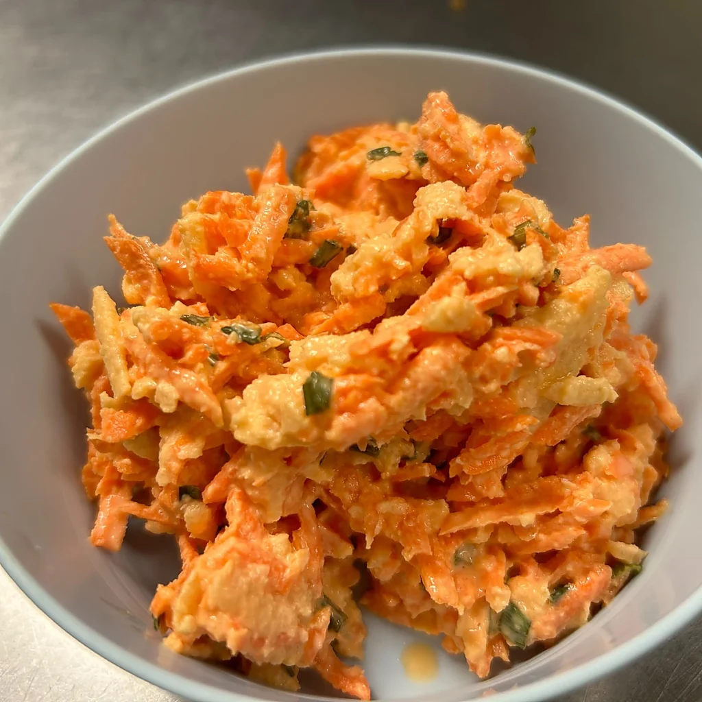 Shredded carrots and apples tossed in a creamy, lightly sweet, seasoned house dressing—another refreshing Slavic veggie side salad.